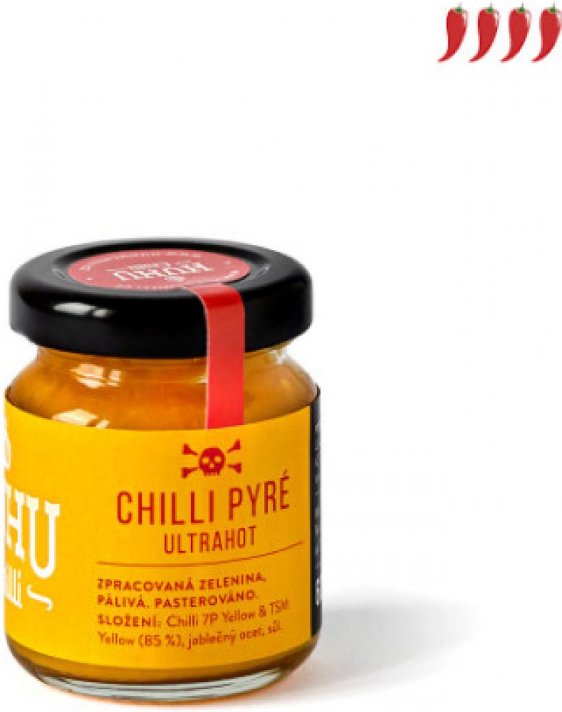 - Žluté pyré, vyrobené z chilli papriček 7 Pot Yellow a žluté Morugy, vás okouzlí ananasovou vůní a zasáhne extrémní pálivostí (1 000 000 SHU). Ocenění: Gr...