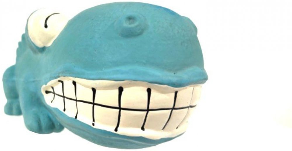 Huhubamboo latexový pískací krokodýl v modré barvě o délce 19 cm, s integrovaným pískátkem. Materiál: latex.