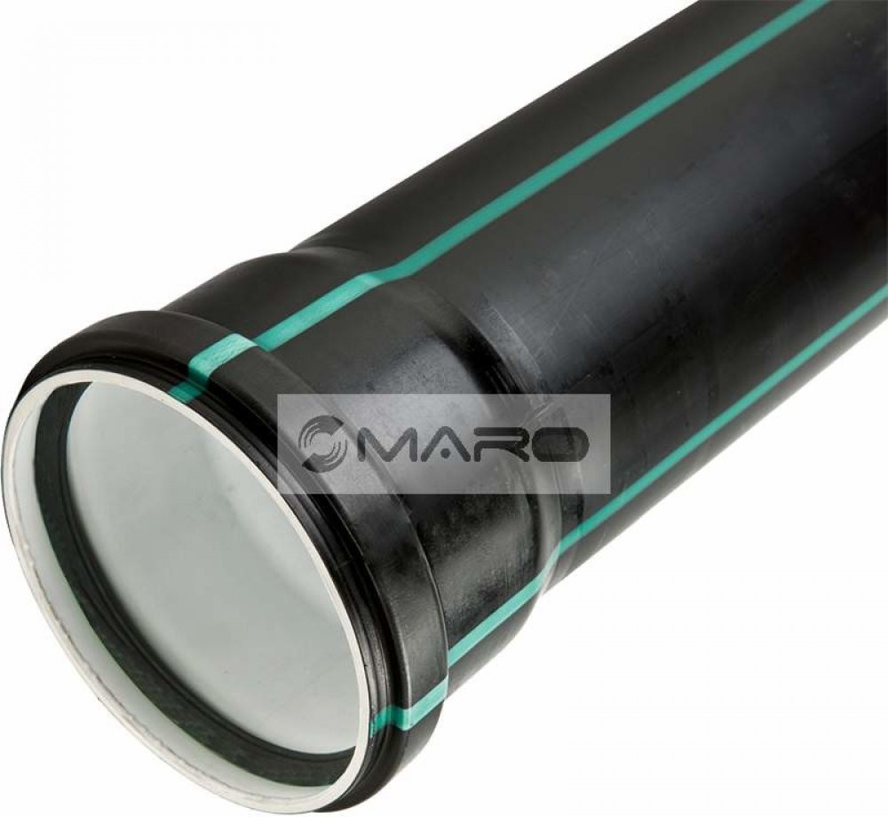 Ultra Silent tichý systém - trubky • odhlučněný třívrstvý systém s vnější i vnitřní vrstvou polypropylenu (PP) a a střední vrstvou z minerálně zesíleného polypropylenu (PP-MD) • trubky pro odvedení odpadních vod při nízkých i vysokých teplotách • použití jak uvnitř budovy, tak i mimo stavební objekt • vynikající akustické vlastnosti: 15 dB (A) při průtokové rychlosti 2 l/s, v souladu s normou EN 14366 se standardním uchycením • vysoká odolnost proti nárazům i při nízké teplotě (-25 °C) • vynikající odolnost vůči vysokým teplotám: dlouhodobé působení do 95 °C, krátkodobé působení do 98 °C • vysoká chemická odolnost • prodloužené hrdlo pro vyšší stabilitu • odbočka s pozvolným úhlem a optimalizovanou konstrukcí pro hladší a zvýšený průtok • široká řada průměrů: DN 32 mm až DN 200 mm • vysoká odolnost proti UV záření díky černé barvě vnější vrstvy • recyklovatelnost: ultra tiché výrobky mají zelený štítek ekologicky šetrných výrobků