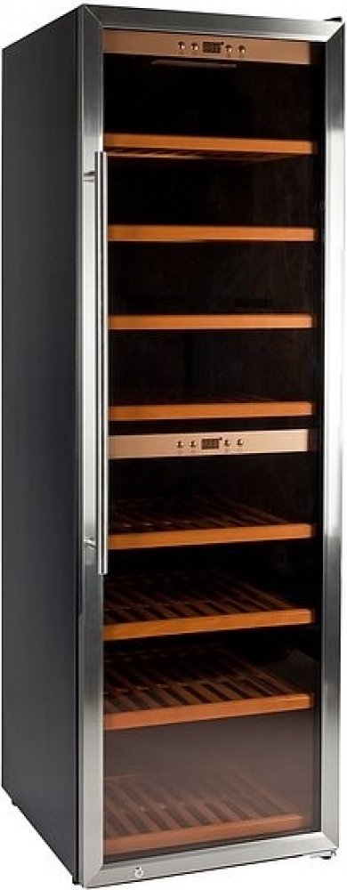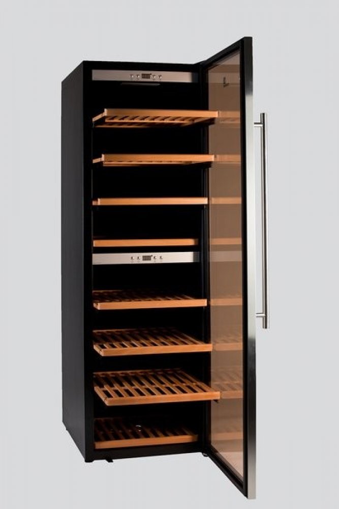 Největší domácí vinotéka značky Humibox a zároveň její vlajková loď. Kapacita této lednice na víno je 180 lahví a to vše při spotřebě 184 kW/rok! Tato luxusní kompresorová vinotéka se stane ozdobou vašeho domu, kanceláře či restaurace. Samozřejmostí jsou dvě zóny, obě samostatně regulovatelné v rozmezí 3 ° C až 22 ° C a dřevěné výsuvné police.