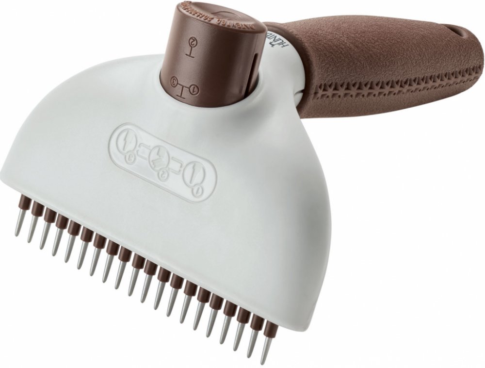 Hrablo na rozčesávání zacuchané srsti, vyčesání chlupů a intenzivní ošetření podsady. Ulehčuje odstranění mrtvé srsti i z extrémně husté a silné podsady. Čepel je vyrobena z kvalitní ušlechtilé oceli, rukojeť je ergonomicky tvarovaná pro lepší manipulaci a uchopení. Díky chytrému tlačítku na zadní straně rukojeti můžete nastavit délku hrotů a také jím vyčesanou srst z hrabla snadno odstraníte.