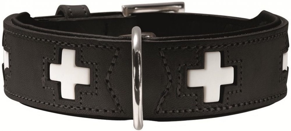 Obojek Swiss je zdoben, dle svého jména, švýcarskými křížky, vk...