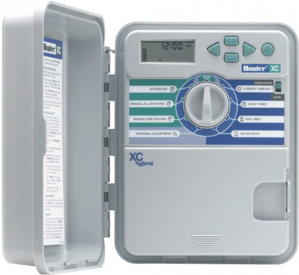 Řídící jednotka XC HYBRID - 600 vnitřní / vnější použití, kde je možnost zvolit si řízení závlahy i bez nutnosti zásuvky 220 V. Určeno pro venkovní i vnitřní instalace, uzamykatelný plastový kabinet. Možnost napojení dešťového senzoru Rain Clik a Solar Sync. Vestavěná paměť pro údaje, možnost napájení i externím trafem 230 V / 24 V AC. trafo není součástí balení. Možnost napájení a spouštění závlahy i alkalickými bateriemi 6 x 1,5 V AA (tužkové baterie), Je třeba použít k eletroventilom ovládací cívky - výhradně 9 V DC HUNTER. Technické parametry:Max. počet sekcií6Počet programov3Počet zavlažovacích cyklu12Počet denních štartu4Doba zavlažovaní1 min - 4 hod/sekciaEkonomizér10-150 %