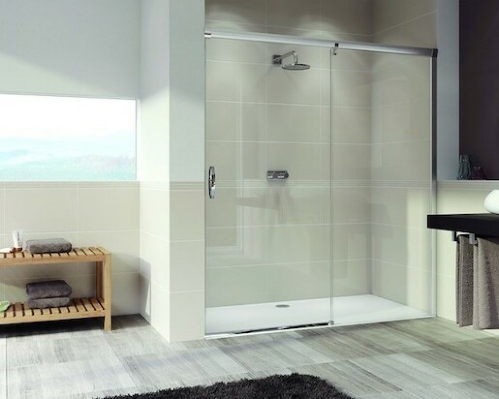 Sprchové dveře bez vaničky a barvou profilů v lesklém chromu, výplň je z čirého skla bez dekoru. Produkt je opatřen technologií Hüppe Anti-Plaque - povrchová úprava aplikovaná ve výrobě, která usnadňuje čištění a umožňuje jednoduché stékání vody v podobně drobných kapek. Posuvný systém otevírání. Pravá orientace.