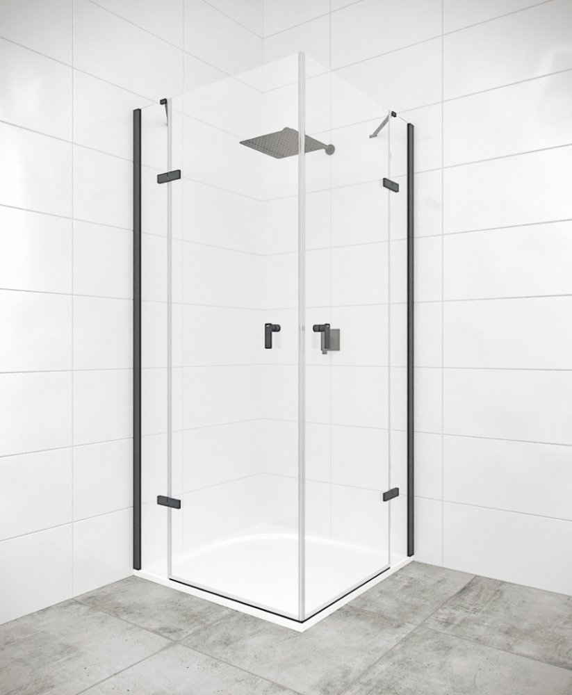 Sprchový kout, výplň je z čirého skla bez dekoru. Produkt je opatřen technologií Hüppe Anti-Plaque - povrchová úprava aplikovaná ve výrobě, která usnadňuje čištění a umožňuje jednoduché stékání vody v podobně drobných kapek. Pantový systém otevírání