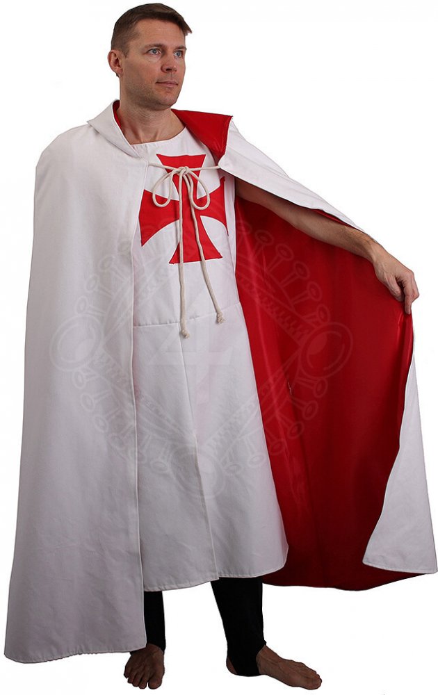 Templářský varkoč jeden templářský varkoč dodávka bez pláště a dalších součástí kostýmu materiál: 100% bavlna Pro praní doporučujeme zvolit čistírnu, aby nedošlo k obarvení bílé látky při volbě velikosti se prosím řiďte touto tabulkou. Pokyny pro čištění a údržbu. Při velikosti na míru nám prosím s číslem objednávky zašlete tato data: 8A Výška postavy: vzpřímená postava, stojící na rovné podložce 8D Obvod hrudníku: přes bradavky, podpaží, vzadu mírně výše (cca 5cm nad úrovní bradavek) 8E Obvod pasu: (cca 6-8cm nad úrovní horní kyčelní kosti); u "dobře živených postav" prosím navíc uveďte obvod přes pupek (maximální obvod) 8F Obvod přes kyčle: (6-8cm pod úrovní pupíku) 8M Obvod paže: měříme přes napnutý biceps při ohnuté paži. 8X Požadovaná délka oděvu: od nejspodnějšího krčního obratle na požadovanou délku oděvu (plášť, šaty, sako a pod.) Pokud nosíte boty na podpadku, nezapomeňte měřit v tomto obutí! Templářský řád (chudí rytíři Kristovi či chrám Šalom v Jeruzalémě) vznikl v důsledku první křížové výpravy jako jeden z prvních rytířských řádů. Markantní červený kříž se stal znakem templářů po druhé křížové výpravě.
