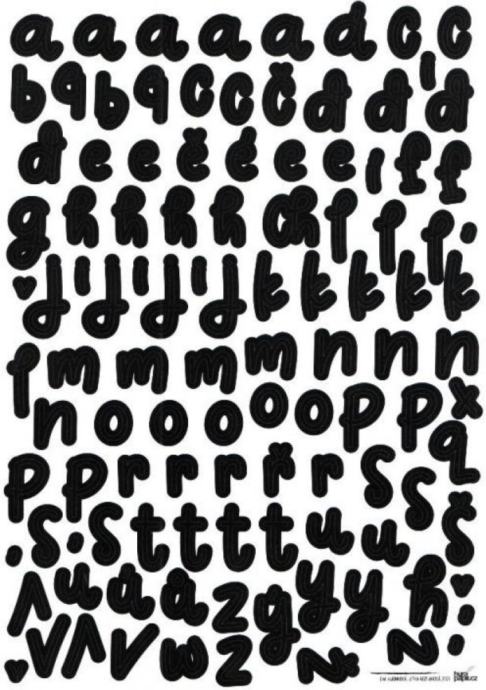 HuráPapír Samolepky A4 abeceda psací písmena černá č.1