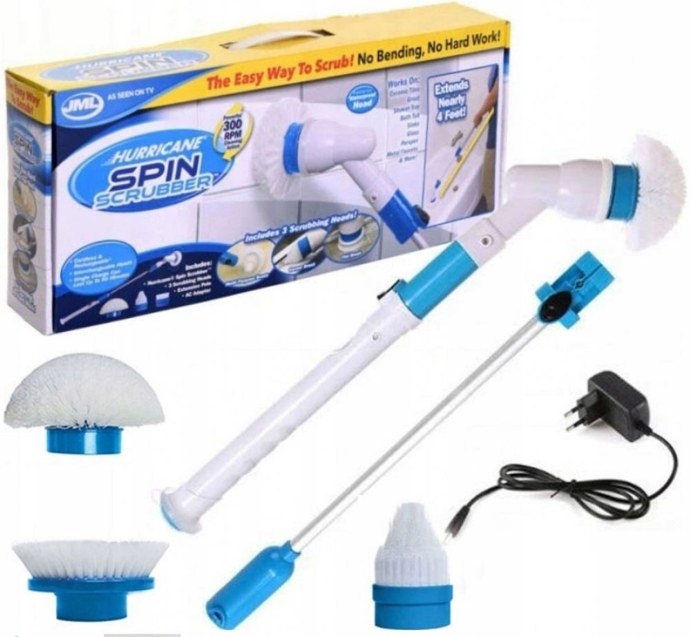 Při úklidu kuchyně nebo koupelny se skoro vždy vyskytne chvíle, kdy musíte vzít kartáč a začít pořádně drhnout. Určitě i Vám to způsobuje bolesti zad, či kolen.Praktické nástavce vyčistí téměř každý povrch. Vhodné pro čištění jako velkých ploch, tak i nejmenších spár.Otočná hlavice, na které se nachází 3000 vysoce kvalitních štětin se pohybuje rychlostí 300 otáček za minutu. Díky tomu bude vaše kuchyň či koupelna čistá bez větší námahy.Během čištění nemusíte klečet, ohýbat se a natahovat se na nedostupné místa. V balení se nacházejí tři různé nástavce s kartáči, určené k vyčištění různých ploch, díky prodlužovací rukojeťi dosáhnete i na ty nejvzdálenější kouty!Díky praktické nabíječce nepotřebujete žádné baterky a ani vás nebude otravovat přívodní kabel.