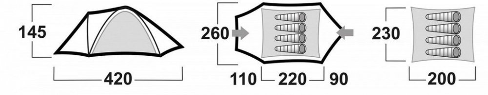 5.7 kg 420 cm 3000 mm 260 cm 145 cm 4 2 Husky turistické kopulové