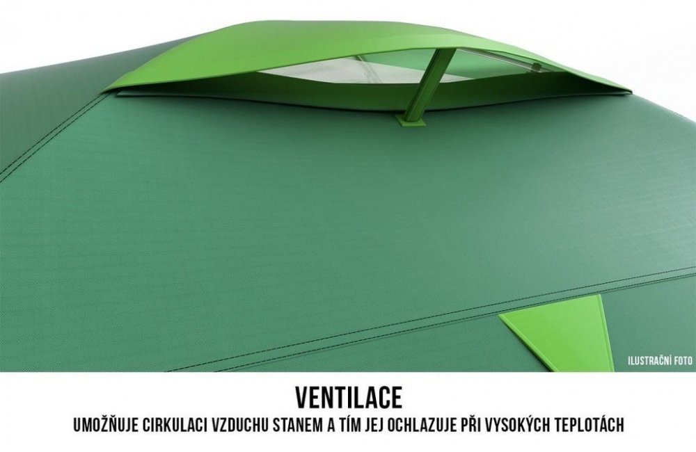 Jemný, prodyšný a přesto pevný materiál, z něhož je vnitřní síťová moskytiéra vyrobena, umožňuje, aby vzduch ve stanu lépe cirkuloval. Tím je zajištěno kvalitní odvětrávání.