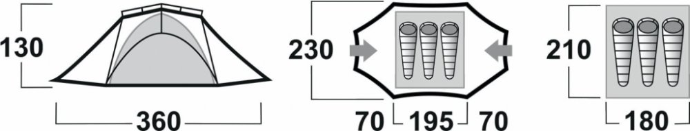 4.9 kg 360 cm 10000 mm 6000 mm 230 cm 130 cm 3 2 Husky turistické s jednou ložnicí kopulové