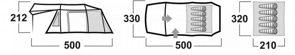 17 kg 500 cm 3000 mm 330 cm 220 cm 5 Husky rodinné s jednou ložnicí tunelové