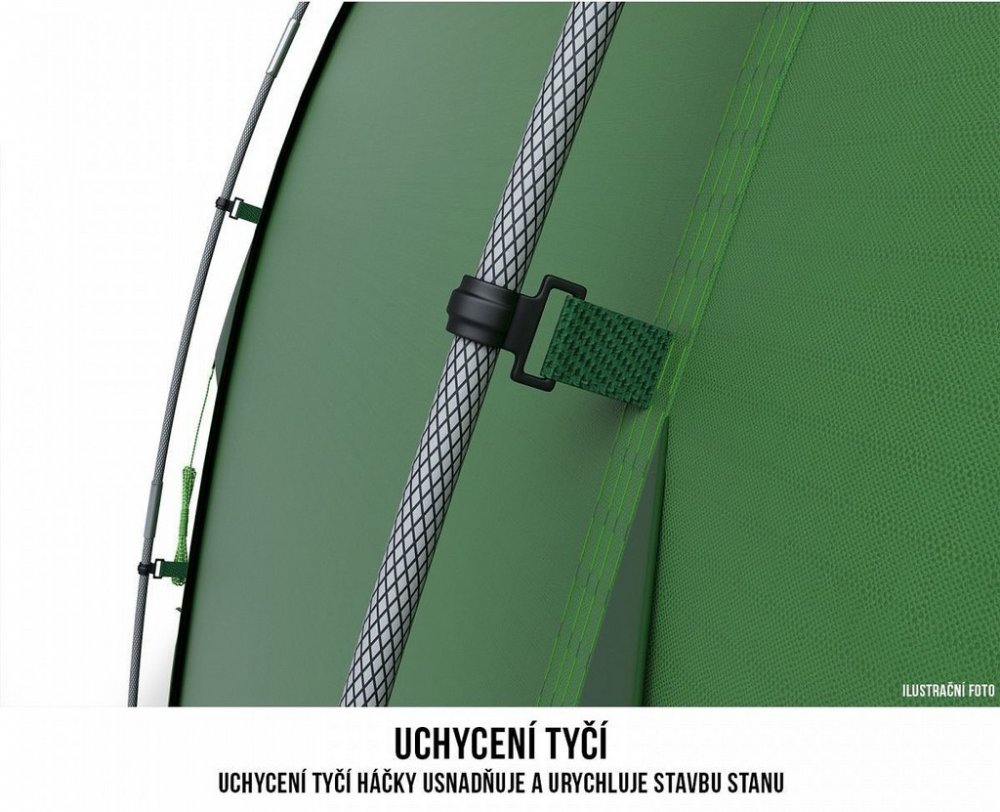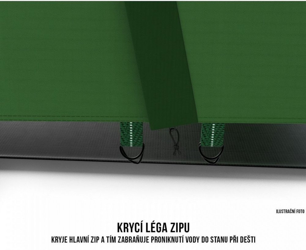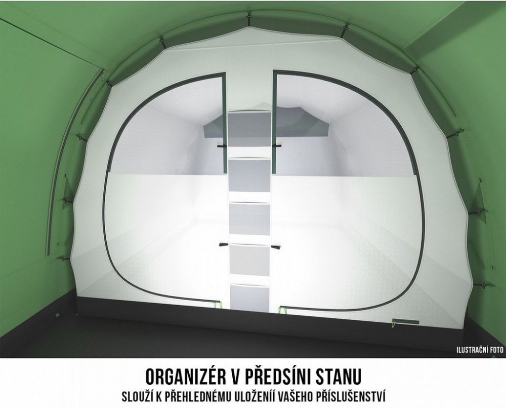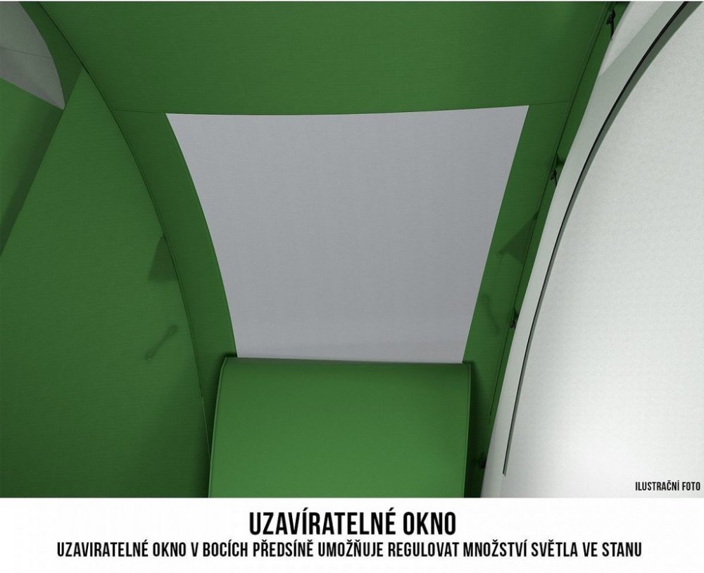 Oddělitelná ložnice - Hlavní ložnici stanu je možno velmi snadno a rychle oddělit pomocí plenty z prodyšného nylonu. Ta je nevyjmutelnou součástí ložnice, která v případě potřeby může být použita, nebo naopak rychle srolována a přichycena ke vchodu. Záleží pouze na Vás!