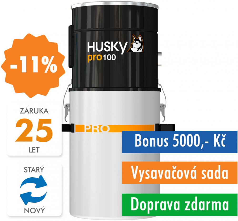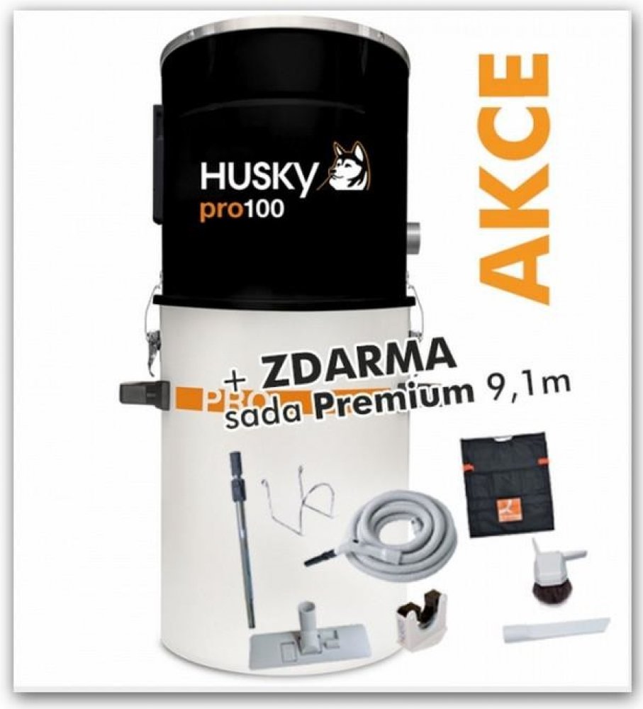 Centrální vysavač Husky Pro 100+sada Premium 9,1m ZDARMA. Pro suché a mokré sání!!