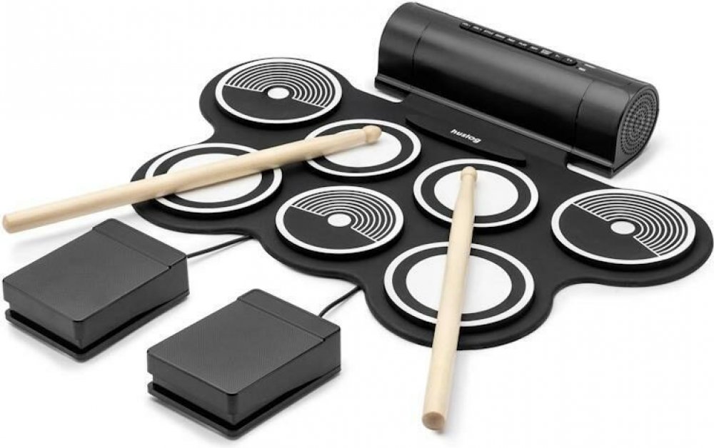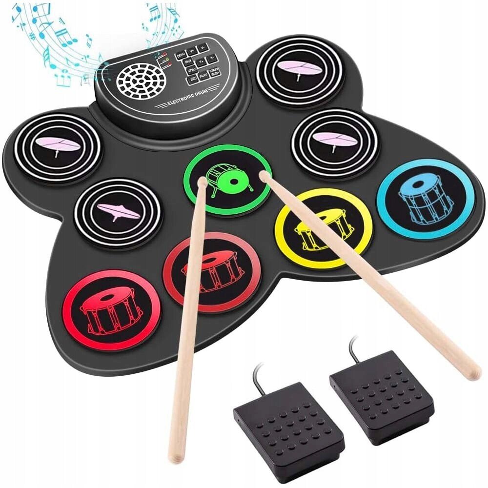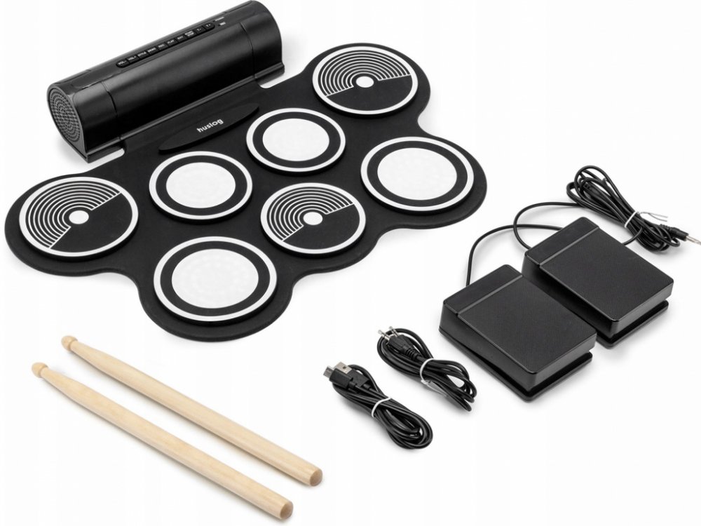 Bicí nástroje mají regulaci hlasitosti v 10 úrovních. Ideální pro domácí výuku. Bicí mají 8 předem nahraných rytmických doprovodů jako ukázkovou funkci. Tlačítko Style umožňuje vybrat zvuk bicích a činelů ze 7 různých tónů. Díky připojení MP3 můžete navíc cvičit s libovolnou skladbou nebo doprovodnou skladbou. K dispozici je 8 doprovodů. Hra s nimi je mnohem jednodušší. Bicí mají funkci nahrávání. Během přehrávání můžete hrát současně s přehrávanou nahrávkou. K bicím jsou přiloženy dva pedály, díky nimž je buben funkční jako středový buben a hi-hat pedál. Možnost připojit sluchátka nebo reproduktory, vám umožní hrát, kdy a kde chcete. Výrobce/Dovozce do EU: mPTech Sp. z.o.o., ul. Nowogrodzka 31, 00-511 Warszawa, Polsko, e-mail: info@mptech24.com, web: www.mptech24.pl.