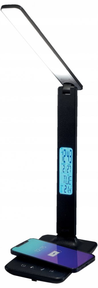 UŽITEČNÝ DOPLNĚK Stolní lampa je vybavena přehledným displejem, který zobrazuje datum, čas a teplotu. Navíc umožňuje vypnout podsvícení displeje, čímž se snadno přizpůsobí nočnímu režimu. MULTIFUNKČNOST Lampička umožňuje kabelové nabíjení přes vestavěný konektor USB i bezdrátové nabíjení. Zařízení musí podporovat bezdrátové nabíjení. PŘIZPŮSOBÍ SE DRUHU PRÁCE Díky nastavitelnému rameni si můžete p...