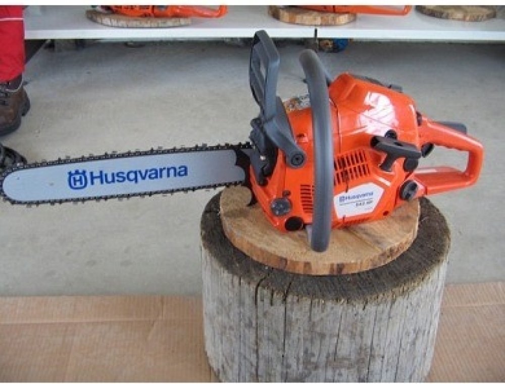 Husqvarna profesionální 38 cm 4.5 kg benzínové 9600 ot/min vysoce výkonná 2200 W 101 dB 20.2 m/s 340 mm 43.1 cm3 .325" pro polena na palivo (15–35 cm) určeno pro nepřetržité intenzivní použití středně těžké (4-6 kg) se středně těžkou údržbou
