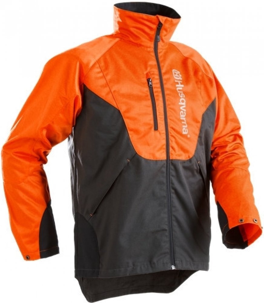 Husqvarna bundy jarní/podzimní oranžové bavlna/polyester lesnické pánské prodloužená velikost 194 cm se zipem 3–4 kapsy 270 g/m² do exteriéru