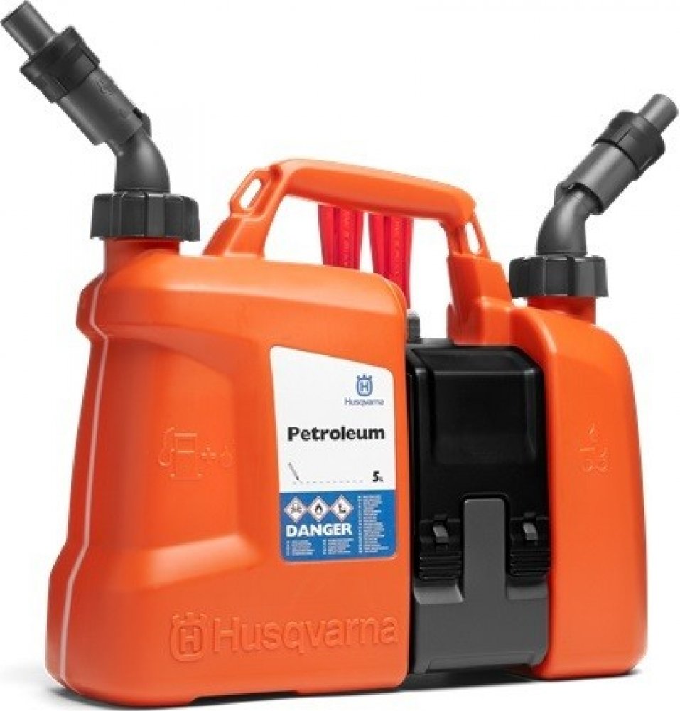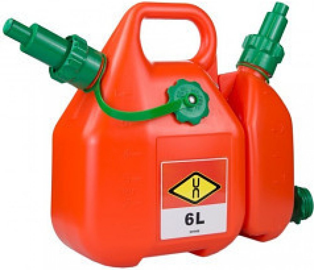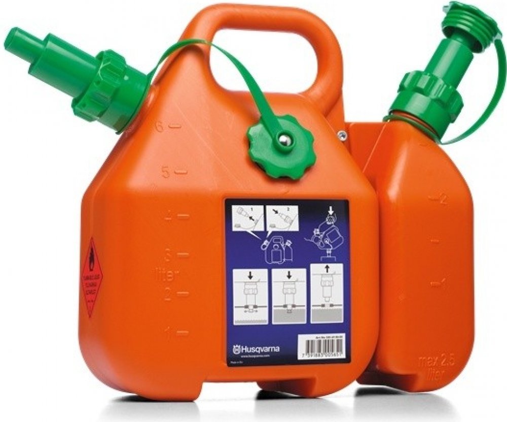 Pojme 6 l benzínu a 2,5 l řetězového oleje. Palivová nádrž má účinnou ochranu proti přelití. Jakmile se nádoba naplní, plnicí hubice se automaticky uzavře a kanystr je možno bez přelití odstranit. Kanystry lze od sebe oddělit, jsou-li spojeny, vzniká mezi nimi je prostor pro pilníky a nářadí. Schváleno Švédským národním zkušebním a výzkumným ústavem podle norem OSN. Tento kombinovaný kanystr je vybaven účinnou ochranou proti přeplnění. Jakmile je nádrž plná, tok paliva se automaticky zastaví a kanystr může být zvednut, aniž by se palivo rozlilo. Kanystry mohou být od sebe odděleny a vzniklý prostor mezi nimi lze vyžít pro umístění pilníků a jiných nástrojů.