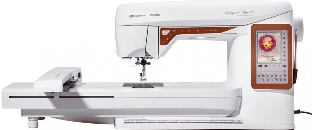 Kombinovaný šicí a vyšívací stroj Husqvarna Designer Topaz 40 je elektronický šicí stroj, s perfektním barevným dotykovým displejem, který má v nabídce 208 různých stehů včetně ozdobných do šíře 7 mm a 4 druhy abecedy. Šicí stroj má EXCLUSIVE SENSOR SYSTEM - rovnoměrné podávání šitého materiálu a SEWING ADVISOR - poradce při šití, kde zobrazuje vhodné nastavení pro zvolený steh, horizontální rotač...