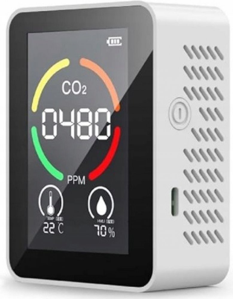 Designový detektor CO2 (monitor 'vydýchaného vzduchu'), svým provedením je vhodný např. do bytu či kanceláře, na LCD displeji zobrazuje úroveň CO2, teplotu, vlhkost.ZDRAVĚJŠÍ PROSTŘEDÍ UVNITŘ BUDOVPřečtěte si článek 'Škodlivé studium. Třetina českých dětí se ve školách 'dusí' na DENIK.CZSkoncujte s vydýchaným vzduchemTrávíte většinu dne v uzavřeném prostoru a často Vás trápí únava, pobolívání hlavy, nebo dokonce nevolnost? Za Vaše obtíže možná může vydýchaný vzduch. Pokud totiž pravidelně nevětráte, v místnosti se neustále zvyšuje koncentrace oxidu uhličitého (CO2), který s sebou mnohdy přináší i zmíněné problémy. Těm se ale můžete úplně vyhnout. Na to, že je čas vyvětrat, Vás totiž může vždy upozornit detektor CO2 Hütermann CO2 - měřič 'vydýchanosti vzduchu'. Jedná se o šikovné zařízení, které sleduje hladinu CO2 a v případě překročení únosné míry Vám dá vědět, že je třeba vyměnit vydýchaný vzduch za čerstvý.Ideální do kanceláří, domácností, ale i do čekáren, tříd apod.Detektor CO2 se skvěle hodí pro použití v domácnosti (ložnici), v kanceláři, ale i ve školních třídách, posluchárnách, čekárnách pro pacienty či jiných veřejných prostorech. Právě tam se totiž vzduch zpravidla velmi rychle vydýchá. Užitečný Vám však může být i v kanceláři nebo třeba doma v ložnici. Tento přístroj navíc disponuje LCD displejem a dá se kdekoli postavit, aktuální hodnotu CO2 v ovzduší s ním tedy máte neustále na očích a nesmírně snadná je i obsluha celého zařízení. S jeho ovládáním si hravě poradí i technicky méně zdatní uživatelé.Zvýšenou hladinu CO2 můžete odečíst i pomocí barevného značení na LCD.Měří i teplotu a vlhkostDetektor Vás potěší i svými nadstandardními funkcemi. Kromě měření hladiny CO2 s ním máte přehled i o vlhkosti a teplotě v místnosti. Veškeré měřené hodnoty se přehledně zobrazují na jeho displeji.Ať už v uzavřených prostorech pracujete, nebo trávíte volný čas, s tímto detektorem si zkrátka můžete zajistit ve všech ohledech zdravé prostředí.Úroveň CO2 ve vzduchu se měří pomocí jednotky ppm (parts per million).350 - 450 ppm hodnota totožná s běžným vnějším prostředímdo 1000 ppm doporučená úroveň CO2 ve vnitřních prostorách1200 až 1500 ppm doporučená MAXIMÁLNÍ úroveň CO2 ve vnitřních prostoráchnad 1500 ppm nastávají příznaky únavy, snižování koncentrace, bolest hlavynad 5000 ppm maximální bezpečná koncentrace bez zdravotních rizikvíce než 5000 ppm nevolnost a zvýšený tepvíce než 15000 ppm dýchací potíževíce než 40000 ppm možná ztráta vědomíParametry zařízení:Oxid uhličitý (CO2):- Sensor: semi-conductor- rozsah měření: 400-5000 ppmTeplota:- rozsah měření: 0 - +50 °C- citlivost: ± 1.0°C- rozlišení: 1°CVlhkost:- rozsah měření: 20~85% RH- citlivost přístroje: ± 2%Napájení:- USB-C kabel 5V/1000mA, (adaptér není součástí balení)- Zabudovaná baterie 1200mAh- váha: 150 gInstalace:- postavení na stůl apod.Podmínky provozu:- 0~50 stupňů Celsia, 0-99%RH (nekondenzující vlhkost)Obsah balení: detektor, USB-C kabel.Toto musíte slyšet