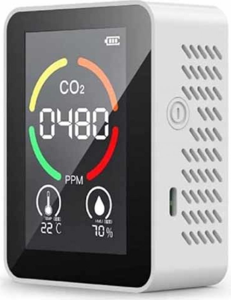 Designový detektor CO2 (monitor 'vydýchaného vzduchu'), svým provedením je vhodný např. do bytu či kanceláře, na LCD displeji zobrazuje úroveň CO2, teplotu, vlhkost.Detektor je osazen citlivým sensorem NDIR, tento typ sensoru měří koncentraci CO2 velmi přesně a dlouhodobě spolehlivě. Na rozdíl od levnějších senzorů se neopotřebovává tak rychle a nezkreslují ho jiné plyny. ZDRAVĚJŠÍ PROSTŘEDÍ UVNITŘ BUDOVPřečtěte si článek 'Škodlivé studium. Třetina českých dětí se ve školách 'dusí' na DENIK.CZSkoncujte s vydýchaným vzduchemTrávíte většinu dne v uzavřeném prostoru a často Vás trápí únava, pobolívání hlavy, nebo dokonce nevolnost? Za Vaše obtíže možná může vydýchaný vzduch. Pokud totiž pravidelně nevětráte, v místnosti se neustále zvyšuje koncentrace oxidu uhličitého (CO2), který s sebou mnohdy přináší i zmíněné problémy. Těm se ale můžete úplně vyhnout. Na to, že je čas vyvětrat, Vás totiž může vždy upozornit detektor CO2 Hütermann CO2 - měřič 'vydýchanosti vzduchu'. Jedná se o šikovné zařízení, které sleduje hladinu CO2 a v případě překročení únosné míry Vám dá vědět, že je třeba vyměnit vydýchaný vzduch za čerstvý.Ideální do kanceláří, domácností, ale i do čekáren, tříd apod.Detektor CO2 se skvěle hodí pro použití v domácnosti (ložnici), v kanceláři, ale i ve školních třídách, posluchárnách, čekárnách pro pacienty či jiných veřejných prostorech. Právě tam se totiž vzduch zpravidla velmi rychle vydýchá. Užitečný Vám však může být i v kanceláři nebo třeba doma v ložnici. Tento přístroj navíc disponuje LCD displejem a dá se kdekoli postavit, aktuální hodnotu CO2 v ovzduší s ním tedy máte neustále na očích a nesmírně snadná je i obsluha celého zařízení. S jeho ovládáním si hravě poradí i technicky méně zdatní uživatelé.Zvýšenou hladinu CO2 můžete odečíst i pomocí barevného značení na LCD.Měří i teplotu a vlhkostDetektor Vás potěší i svými nadstandardními funkcemi. Kromě měření hladiny CO2 s ním máte přehled i o vlhkosti a teplotě v místnosti. Veškeré měřené hodnoty se přehledně zobrazují na jeho displeji.Ať už v uzavřených prostorech pracujete, nebo trávíte volný čas, s tímto detektorem si zkrátka můžete zajistit ve všech ohledech zdravé prostředí.Úroveň CO2 ve vzduchu se měří pomocí jednotky ppm (parts per million).350 - 450 ppm hodnota totožná s běžným vnějším prostředímdo 1000 ppm doporučená úroveň CO2 ve vnitřních prostorách1200 až 1500 ppm doporučená MAXIMÁLNÍ úroveň CO2 ve vnitřních prostoráchnad 1500 ppm nastávají příznaky únavy, snižování koncentrace, bolest hlavynad 5000 ppm maximální bezpečná koncentrace bez zdravotních rizikvíce než 5000 ppm nevolnost a zvýšený tepvíce než 15000 ppm dýchací potíževíce než 40000 ppm možná ztráta vědomíParametry zařízení:Oxid uhličitý (CO2):- Sensor: NDIR- rozsah měření: 400-5000 ppmTeplota:- rozsah měření: 0 - +50 °C- citlivost: ± 1.0°C- rozlišení: 1°CVlhkost:- rozsah měření: 20~85% RH- citlivost přístroje: ± 2%Napájení:- USB-C kabel 5V/1000mA, (adaptér není součástí balení)- Zabudovaný akumulátor 1200mAh (6-8h provozu)- váha: 150 gInstalace:- postavení na stůl apod.Podmínky provozu:- 0~50 stupňů Celsia, 0-99%RH (nekondenzující vlhkost)Obsah balení: detektor, USB-C kabel.Toto musíte slyšet122/150.