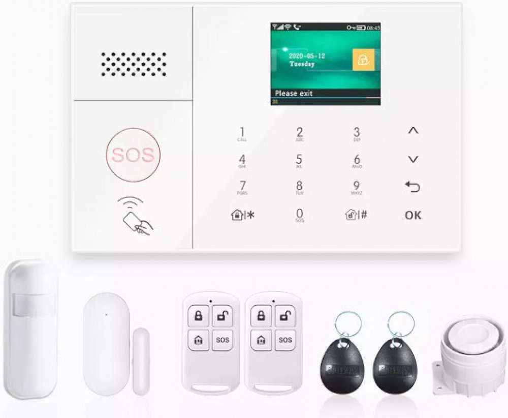 Bezdrátový domácí alarm nabízí kombinovanou ústřednu se SIM voláním, SMS i push notifikacemi přes aplikaci Smart Life (Tuya). Zařízení detekuje pohyb i otevření dveří/oken, disponuje integrovanou sirénou a SOS tlačítkem, podporuje až 90 bezdrátových čidel a má záložní baterii 3,7 V/500 mA ...