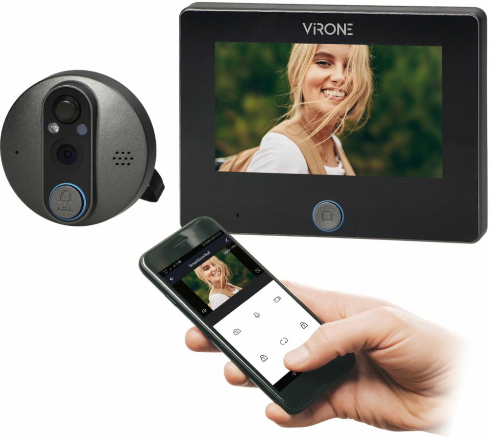 Elektronický kukátko s integrovaným pohybovým senzorem a 4.3' LCD displejem, nahrávání obrazu a videa na Micro SD kartu, menu ve 4 jazycích, vestavěná baterieTato kamera nahrazuje tradiční optické kukátko. Umožňuje vám sledovat osobu stojící přímo před dveřmi na 4,3palcovém barevném LCD displeji nebo na Vašem mobilním telefonu. Zařízení dokáže nahrávat video a fotografie na paměťovou kartu Micro SD s maximální kapacitou 32 GB (karta není součástí balení). Vestavěný senzor pohybu zvyšuje úroveň vaší bezpečnosti nahráváním snímků po detekci pohybu v dosahu 2 m. IR diody zajišťují kvalitní obraz v noci nebo při omezeném okolním osvětlení. Jedná se o diskrétní kameru, kterou lze namontovat místo standardního optického kukátka.Zařízení je obzvláště užitečné pro starší nebo malé osoby a osoby se špatným zrakem.Vlastnosti:Elegantní: moderní velký 4,3' monitor, který nám umožňuje vidět více. Zabezpečení: aktivace detektoru pohybu, prohlížení, nahrávání a ukládání video a foto souborů z kamery na kartu Micro SD znamená, že vždy víte, kdo nás navštívil. Viditelnost: kamera je vybavena přídavným IR LED osvětlením a umožňuje nám jasně vidět i v noci. Funkce SMART: ovládání ze smartphonu nebo tabletu odkudkoli díky jednoduché aplikaci dostupné pro Android i iOS. Dlouhý provoz: vestavěná baterie s kapacitou 5000 mAh umožňuje práci bez dobíjení po dobu několika měsíců.Technické parametry:Napájení: vestavěný akumulátor 3.7V/5000mAhNabíjení: microUSB 5VSMART funkce: ano, Tuya aplikace pro vzdálené zobrazení a informaci o zazvonění na mobiluTloušťka dveří: 39-104mmPrůměr dveřního otvoru: 16-25mmdveřní zvonek: ano, 12 melodií s nastavením hlasitostiMonitor:Rozměr 130x98x23mmLCD displej 4.3'Roxzlišení: 1024x720Záznam: Micro SD karta, foto+video 1280x720Detekce pohybu: anoKamera:Rozměr 67x23mmÚhel záběru: 90°Noční vidění: ano, IR přisvícení5/11.44.