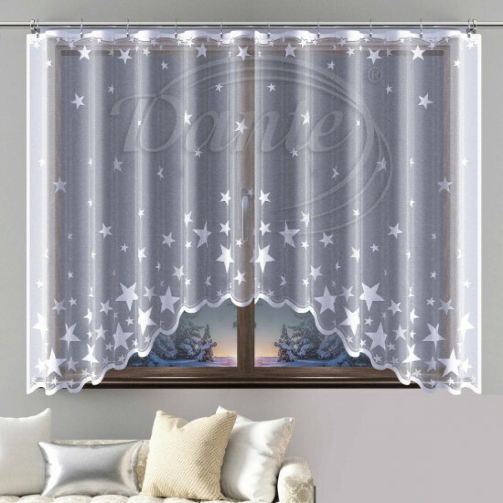Krásná oblouková záclona se vzorem hvězd bude ozdobou Vašich oken na Vánoce.