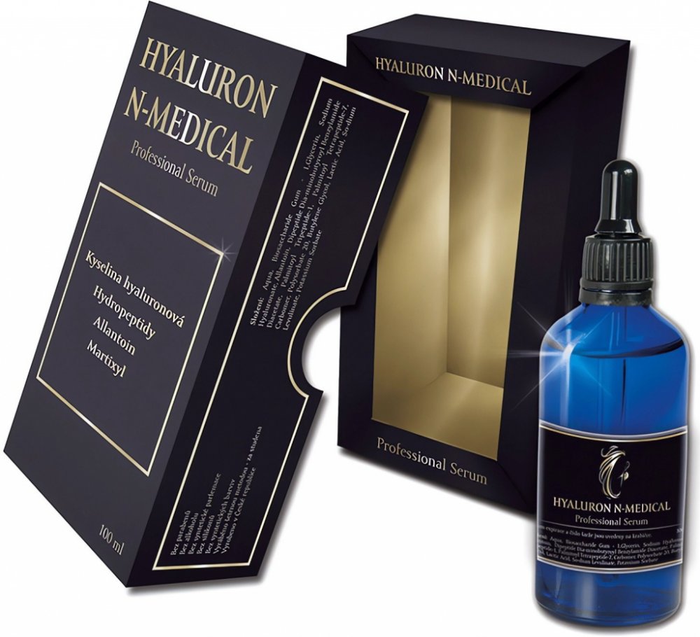 Hyaluron N-Medical bio-sérum je vysoce účinné sérum vytvořené pro profesionály v kosmetických salónech a na kosmetických klinikách. Bio-sérum se vyrábí za nejpřísnějších hygienických a technologických podmínkách v České republice a je kontrolováno v laboratořích, aby splnilo ta nejpřísnější kritéria a dostalo se vám do rukou to nejkvalitnější, co umíme vyrobit. Aby byl obsah lahvičky co nejvíce chráněn, použili jsme modrou barvu, která zabrání průchodu viditelného světla a Vaše sérum bude lépe chráněno před UV paprsky.