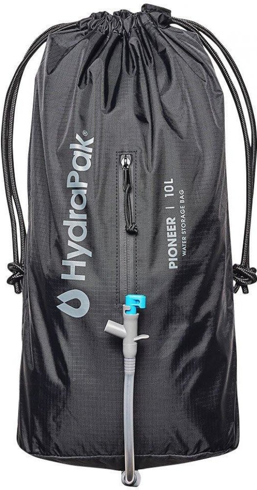 Vak na vodu Pioneer 10 od značky Hydrapak využijete při kempování nebo vícedenním treku. Jeho součástí je odolný nylonový obal s kapsou pro uschování vodního filtru nebo jiného příslušenství. Díky obalu můžete celý vak zavěsit a usnadnit si výdej vody. Součástí je také výdejní kohout, kterým rychle naplníte lahve, umyjete si ruce nebo nádobí pod "tekoucí " vodou.