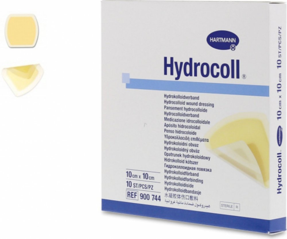 Hydrocoll je vysoce flexibilní samolepicí krytí. Má savé jádro, které rychle absorbuje exsudát a proměňuje jej v gel, který udržuje ránu dostatečně vlhkou.Vytváří tak ideální prostředí pro vznik granulační tkáně.
