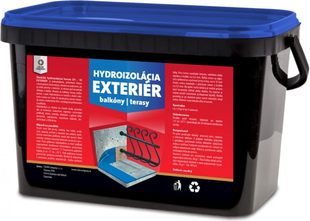 PopisElastická hydroizolační hmota EH - 1K je jednosložková, polotekutá hmota s tixotropními vlastnostmi, vhodná na vodorovné, ale i svislé povrchy v exteriéru. Je určena pod keramické obklady a dlažbu. Vhodná na balkony, terasy, lodžie, sklepy, apod. Hydroizolace se nanáší ve dvou nátěrech o vrstvě cca 1 mm. Po zaschnutí se vytvoří elastický, těsný a voděodolný film s vynikající přilnavostí k podkladu. Hydroizolace je vhodná pro více druhů povrchů jako jsou betonové, cementové, vápeno cementové podklady, beton, silikátové a pálené cihly, pórobeton, sádrokarton, cementově vláknité, překližkové, dřevotřískové a OSB desky.Návod na použitíPovrch musí být pevný, soudržný, suchý, čistý, zbavený nečistot a mastnot bez volných částic. Čerstvé minerální podklady musí být vyzrálé. Nové omítky a betony musí být dokonale vysušené a zpevněné. Před aplikací hydroizolace se musí podklad napenetrovat akrylátovou penetrací v poměru 1: 1. Doporučená aplikační teplota je od 5° - 35°C. Před aplikací hmotu promíchejte pomocí míchadla. Výrobek je připraven k přímému použití, nepřidávejte žádné přídavné látky. První vrstvu nanášejte štětcem, válečkem nebo stěrkou o tloušťce cca 0,5 mm. Další vrstva se doporučuje aplikovat po 24 hodinách. Druhou vrstvu nanášejte v příčném směru o tloušťce cca 0,5 mm. Na zcela suchou izolaci je možné přímo lepit keramický obklad nebo dlažbu, doporučená doba schnutí izolace je 24 hodin. Na lepení je možné použít cementové i disperzní lepidla. Všechny pomůcky je po skončení práce nutno okamžitě omýt vodou. Balení nenechávejte dlouho otevřené. Chraňte před mrazem.Spotřebacca 1,4kg / m2 při dvou nátěrech