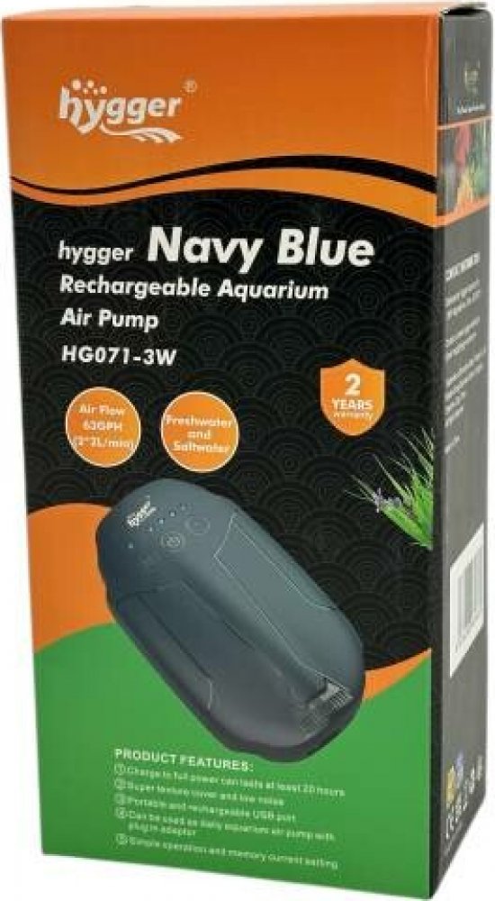 Dobíjecí vzduchovací motorek hygger HG-071 je ideální volbou pro každého akvaristu. Poskytuje spolehlivé okysličování vody jak při běžném provozu, tak v nouzových situacích – například při výpadku proudu, přepravě ryb nebo během rybaření. Využít ho můžete v akváriu, kbelíku s nástrahami nebo při transportu ryb.
