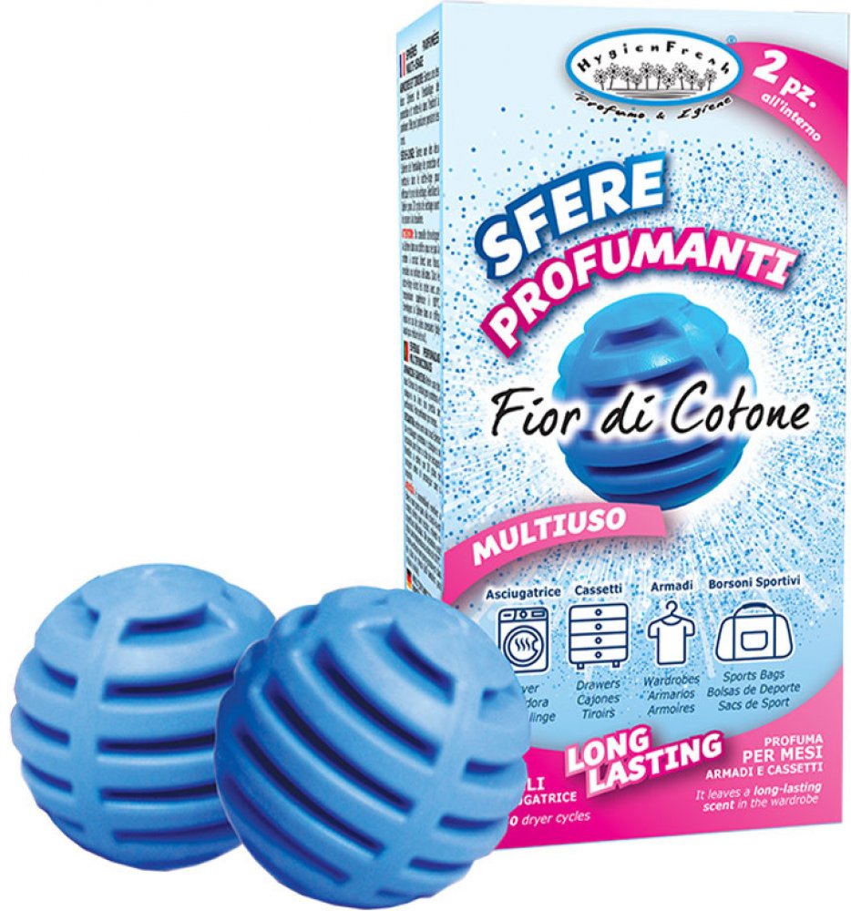 HYGIENFRESH multifunkční parfémované kuličky Květy bavlníku 2 ks Multifunkční parfémované kuličky jsou navrženy tak, aby vás jejich vůně doprovázela při každém vašem kroku. Jejich jedinečný design a složení zajišťují, že vůně je uvolňována rovnoměrně a dlouhodobě, aby vaše oblečení a prostředí zůstalo co nejdelší dobu svěže vonící.