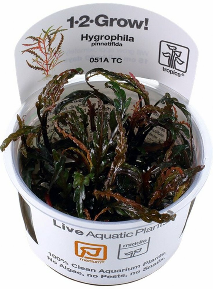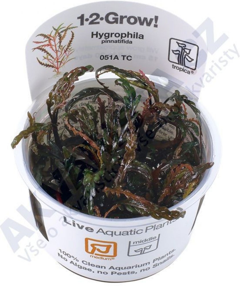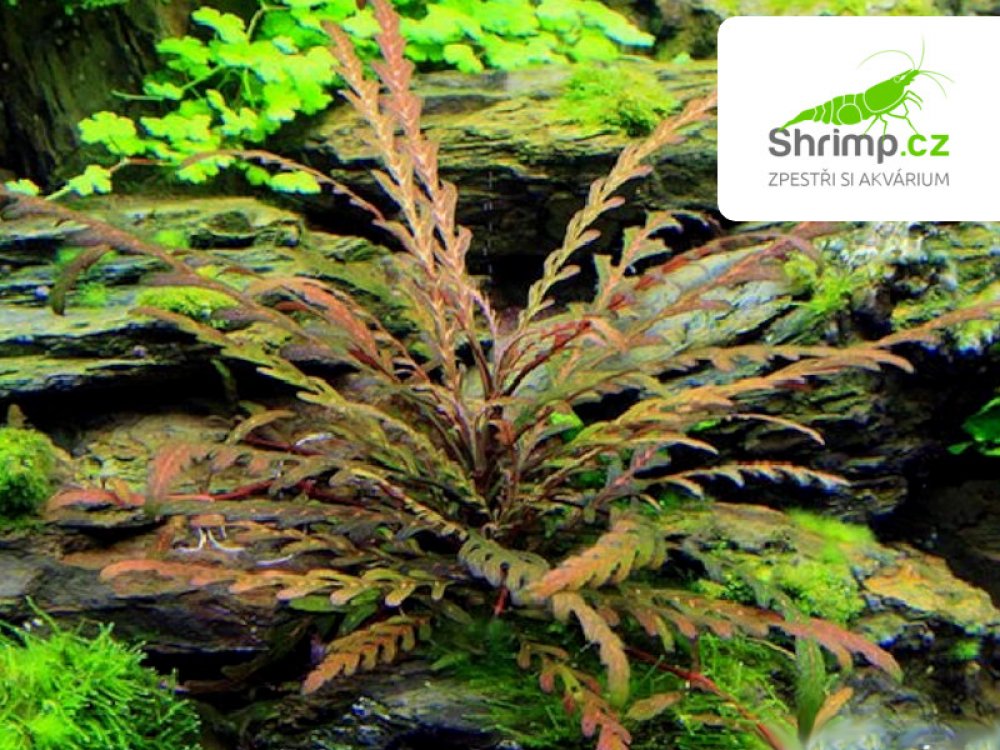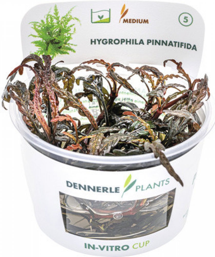 Hybridní stonková rostlina k upevnění na kořeny a kameny.Hygrophila pinnatifida pochází z Indie. Získává na povrchu zbarvené hnědé listy s výraznou vínovou barvou pod ním. Vytváří horizontální boční výhonky a horní výhonky by měly být vytlačeny, aby se udržel kompaktní a atraktivní růst. Vodorovná strana výhonků se snadno připevní na dřevo a kameny. Růst je mírný, stonky 15-40 cm vysoké a 10-20 cm...