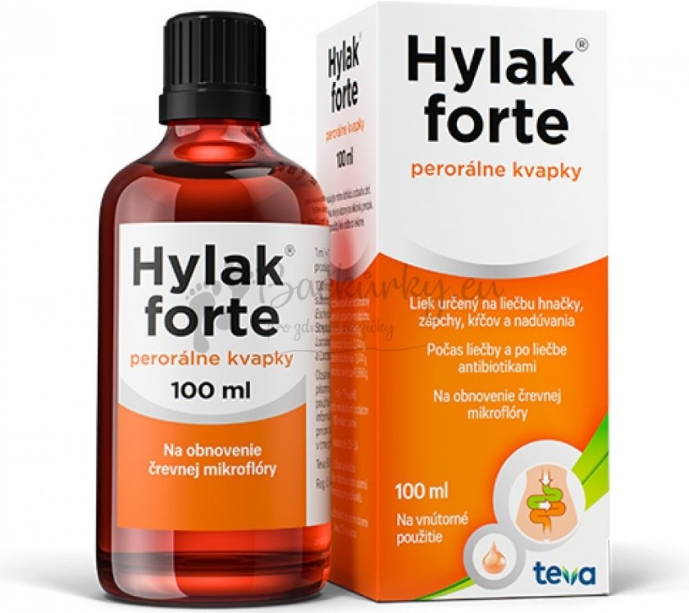 Pro normální funkci trávicího ústrojí člověka je nezbytná přítomnost určitých bakterií, které osidlují převážně oblast tlustého střeva. Dokončují proces trávení, brání množení choroboplodných zárodků, produkují vitaminy B a K. Rozmanité vnější vlivy, jako je užívání antibiotik, léčba zářením, nezvyklá nebo nevhodná strava či případná infekce, narušují mikrobiální rovnováhu ve střevě a dostaví se průjem nebo zácpa, nadýmání, pocit plnosti. Užíváním přípravku Hylak forte je přirozenou cestou podpořen růst tělu prospěšných bakterií, úprava pH a tím i normální činnosti trávicího ústrojí. Bez porady s lékařem můžete přípravek Hylak forte užívat při nadýmání, průjmu nebo zácpě, poruchách trávení, při trávicích obtížích spojených s užíváním antibiotik nebo sulfonamidů a při obtížích spojených se změnou podnebí a stravy (např. při cestování). Pouze po doporučení lékaře je možno přípravek Hylak forte užívat při zánětu tlustého střeva, chronickém zánětu žaludku a tenkého střeva, při trávicích obtížích po léčbě zářením, při dermorespiračním syndromu (dědičné onemocnění vyskytující se již u dětí a přetrvávající případně až do dospělosti, charakterizované ekzémy a opakovanými infekcemi dýchacích cest a případným výskytem alergické rýmy nebo průduškového astmatu), při příznacích, jako je zvracení, poruchy