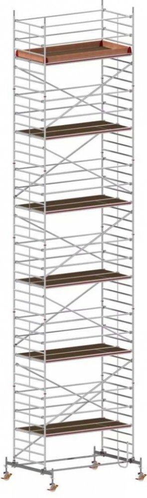 Pojízdné hliníkové lešení HYMER typ 8073 je určeno pro profesionální použití. Lze z něj sestavit věž pro pracovní výšku až 13,6 metru. Podle bezpečnostních předpisů by měly být jednotlivé výškové moduly (v případě použití v exteriéru) vybaveny závažím, které však není obsaženo v ceně! Extrémně robustní provedení díky svařovaným částem rámu. Rychlá montáž a demontáž díky zacvaknutí na vzpěrách a diagonálách. Protiskluzový povrch pracovních plošinek a bezpečnostní hák pro bezpečnou montáž a demontáž. Pohodlné vyrovnání nerovností podlahy díky výškově nastavitelným otočným kolečkům. Snadné boční posunutí lešení na traverze bez přestavování. Obzvláště velká pracovní plocha díky dvěma vedle sebe ležícím plošinám. Délka podlážky 2,95m Šířka rámu 1,50m Pracovní plocha 2,95 x 1,30 m Otočná kolečka Ø 200 mm Třída zatížení/skupina lešení 2: 150 kg/m²
