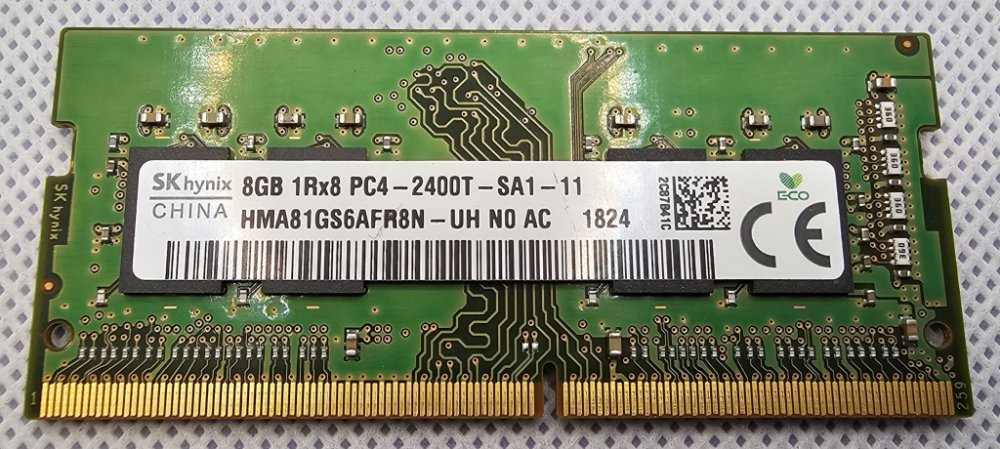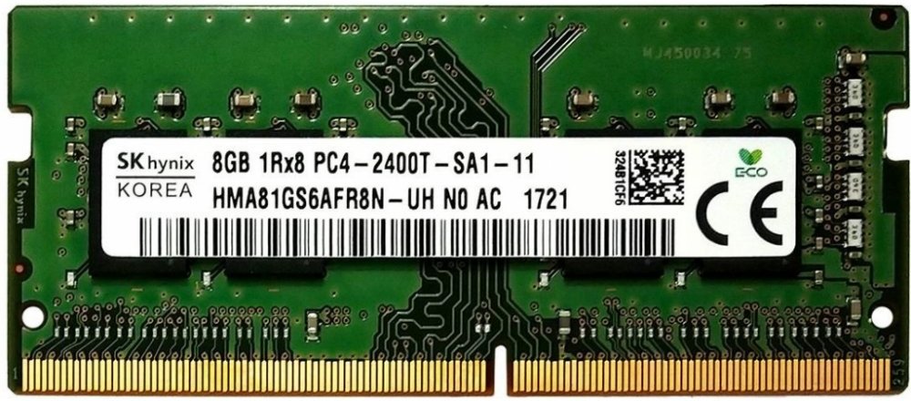 Model: SK hynix DDR4 2400MHz 8GB 1Rx8 PC4-2400T-SA1-11 SO-DIMM CL17 HMA81GS6AFR8N-UH N0 AD