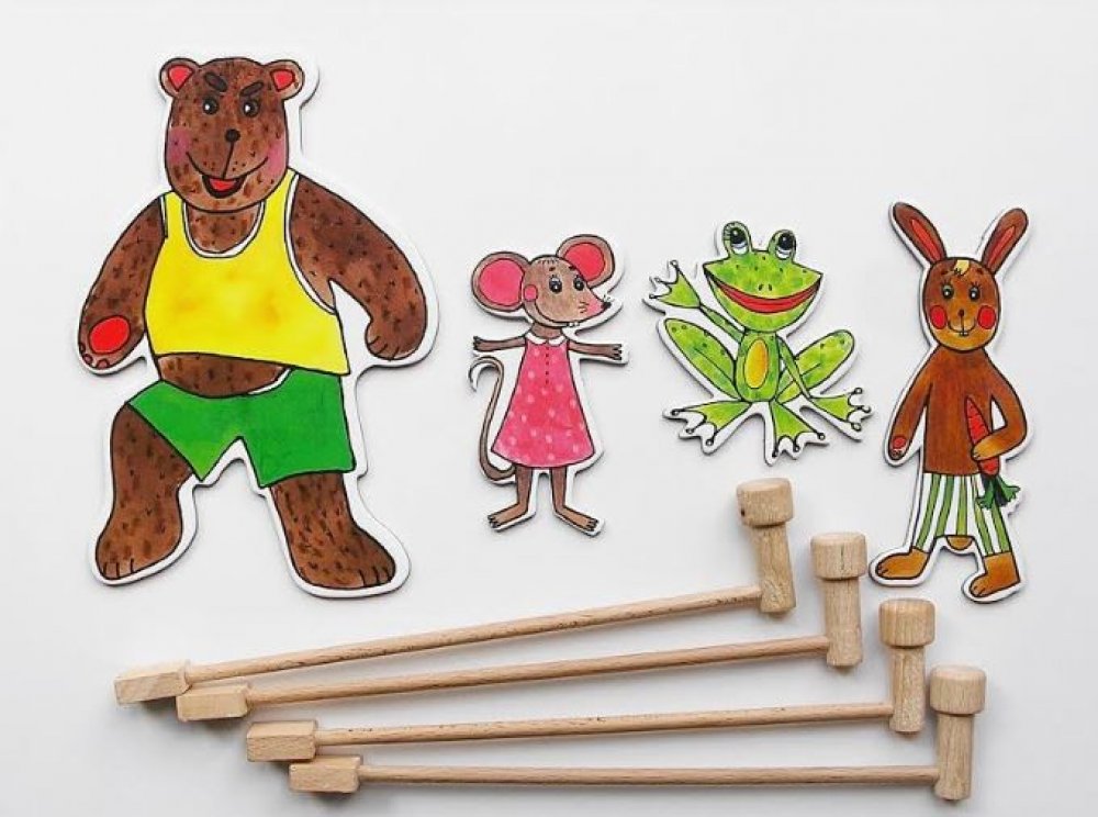 BOUDO, BUDKO - balíček s tyčkami Loutkový balíček KOMPLET s tyčkami obsahuje 4 ks loutek a 4 ks univerzálních vodicích tyček. Loutky jsou oboustranné, velice pevné, ideální pro děti na hraní. TYČKY je nutno připevnit na záda loutky LEPIDLEM (nelze sundavat) či LEPÍCÍ GUMOU (lze sundat a opět nasadit, aniž by se loutka poškodila). Lepící guma ani lepidla nejsou součástí balení; výběr naleznete v sekci Příslušenství. Obsah balení: LOUTKY: myška žabka zajíček medvěd PŘÍSLUŠENSTVÍ: 4 ks univerzálních vodících tyček MATERIÁL: loutky: knihařská lepenka vodícítyčky: dřevo VELIKOST: loutky: cca 10 - 18,5 cm tyčky: 21 cm