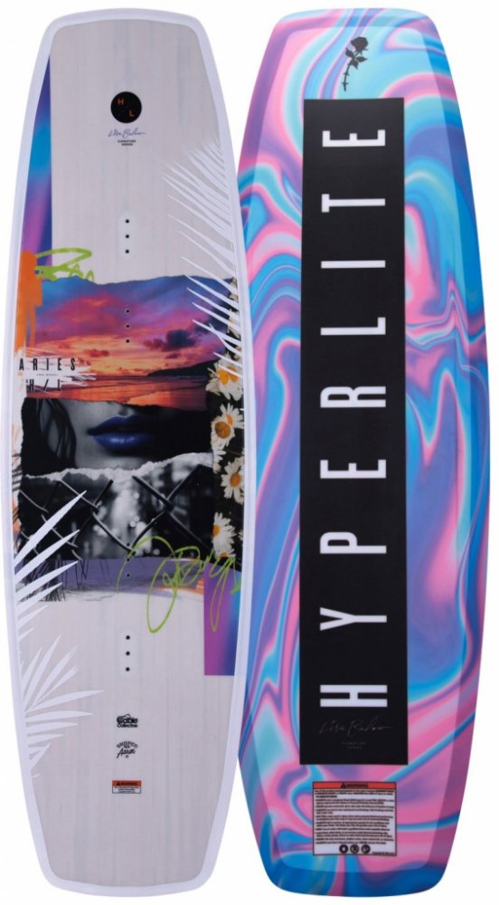 Dosud nejměkčí parková deska od Hyperlite vznikla na míru jedné z předních riderek Lise Baloo. Vysoká flexibilita wakeboardu je podpořena Satin Flexem a abys měla nad deskou perfektní kontrolu, disponuje úzkým profilem, díky kterému hravě udržíš hranu a přechody z jedné strany na druhou budou hračka. Speciální abrupt continuous rocker ti přinese ještě výživnější zážitek z rychlé jízdy a dřevěné jádro udrží konzistentní pružnost po celé délce, takže budeš vědět, co od svého wakeboardu čekat. Aries je součástí Cable Collection, která je inspirována profi ridery, takže si pořídíš desku s osobitým charakterem.