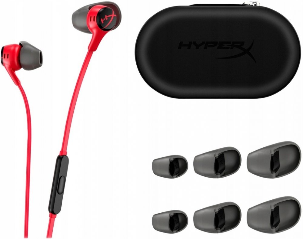 Drátová sluchátka do uší HyperX Cloud Earbuds II červeno-šedá 705L8AAR Drátová sluchátka do uší HyperX Cloud Earbuds II červeno-šedá 705L8AAR, široká kompatibilita audio 3.5 mm jack