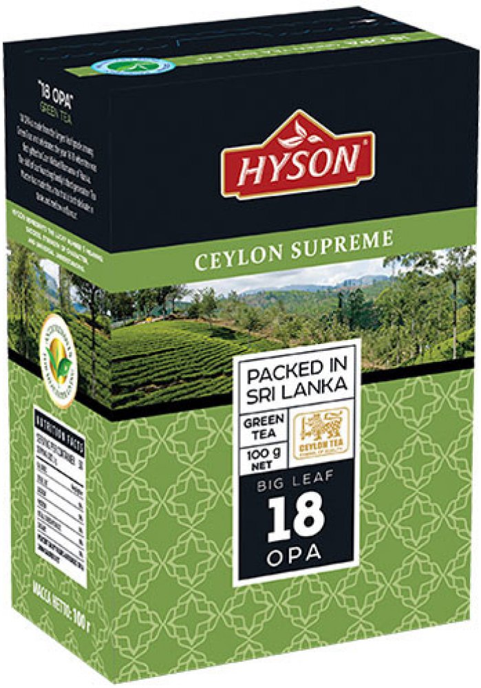 Hyson Pure GreenSložení: zelený čaj 100%Hmotnost: 100gVýrobce: Hyson teas (PVT) LTD., adresa: No. 190/1 Siri Sumana Mawatha, Angoda, LK Srí LankaZemě původu: Sri LankaSkladovat v suchu a chladu.———————————-Čistý sypaný zelený čaj k Vám ze Srí Lanky putuje v papírové krabičce pod názvem Hyson Pure Green. Užijte si každý doušek tohoto nekomplikovaného požitku.Firma Hyson teas (PVT) LTD., adresa: No. 190/1 Siri Sumana Mawatha, Angoda, LK Srí Lanka, je specializovaná čajová společnost zabývající se vývozem nejkvalitnějšího ceylonského čaje. Je držitelem certifikací HALAL a KOSHER a evropského, japonského i amerického značení pro ekologickou produkci. Čaje Hyson jsou tím pravým pro náročné spotřebitele, kteří ocení jak čisté, tak ochucené černé, zelené i bylinné čaje, a také čajové směsi obohacené o kousky pečlivě vybíraného ovoce, okvětních lístků či dokonce koření.Složení: