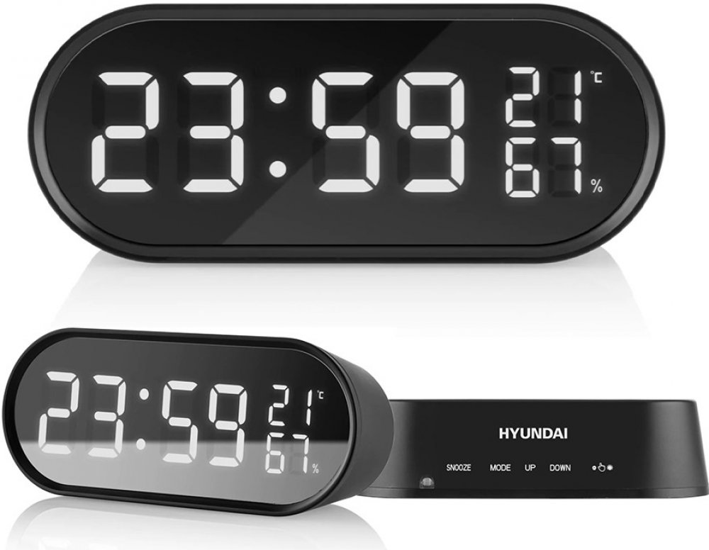 Budík Hyundai AC331 v sobě kombinuje eleganci a ryzí praktičnost. Díky velkému LED displeji získáte okamžitě přehled o aktuálním čase. Součástí displeje je i ukazatel aktuální vnitřní teploty a vlhkosti. Funkce automatické regulace jasu zaručuje vynikající čitelnost displeje ve slunných dnech, a naopak nerušivé zobrazení údajů v nočních hodinách. Čas lze zobrazit v režimu 12 nebo 24 hodin.