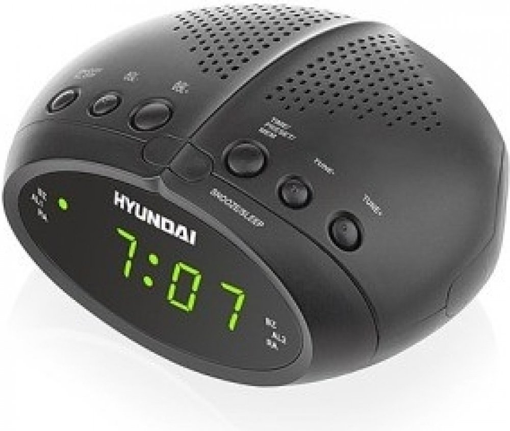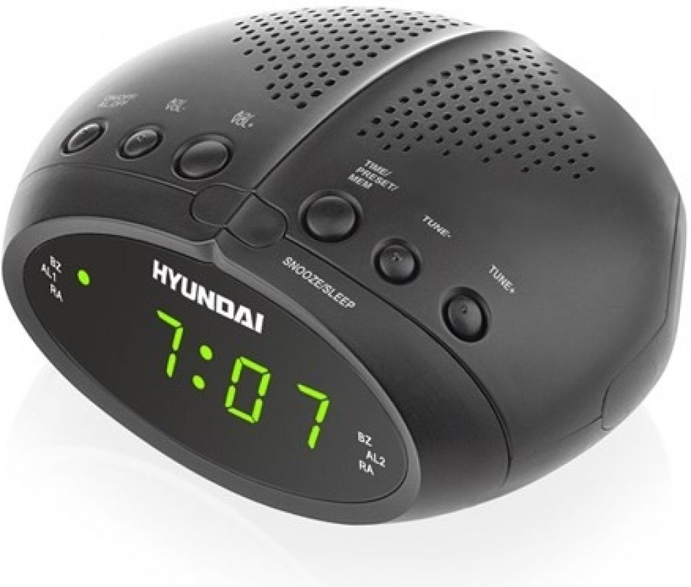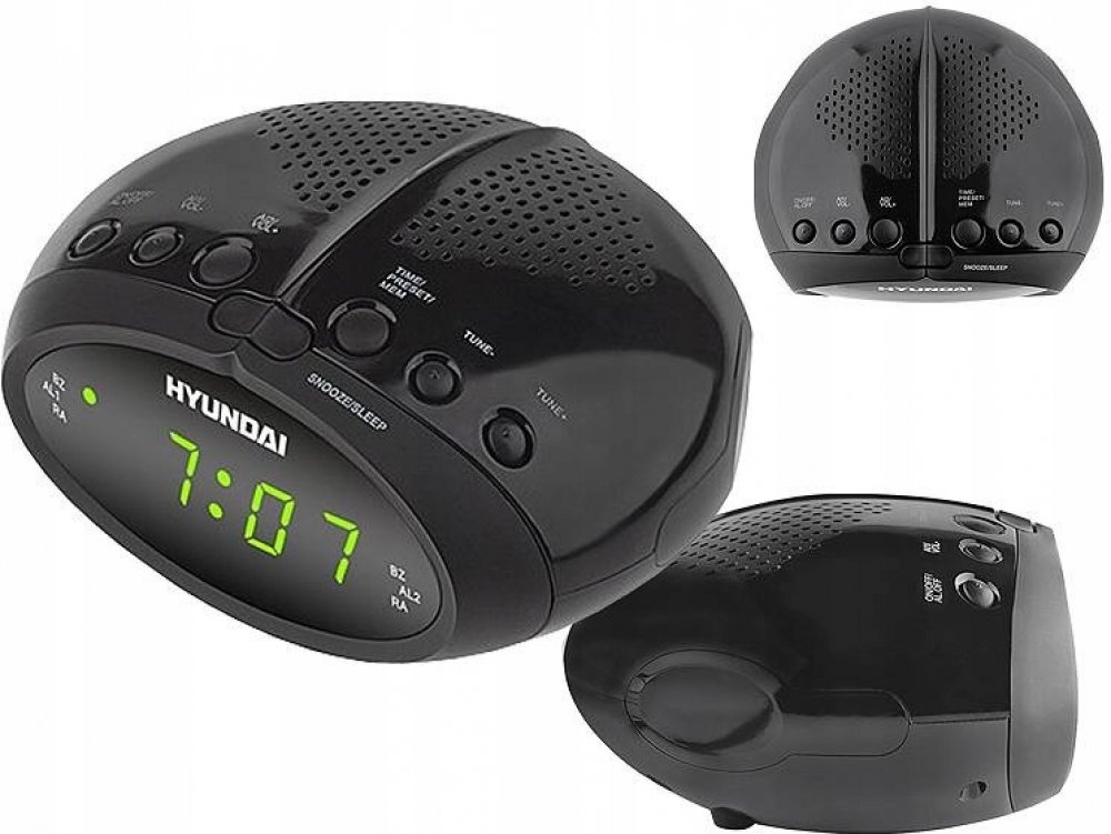 Radiobudík Hyundai RAC 213 v černém provedení disponuje FM tunerem s 20ti předvolbami a 2 nezávislými budíky.