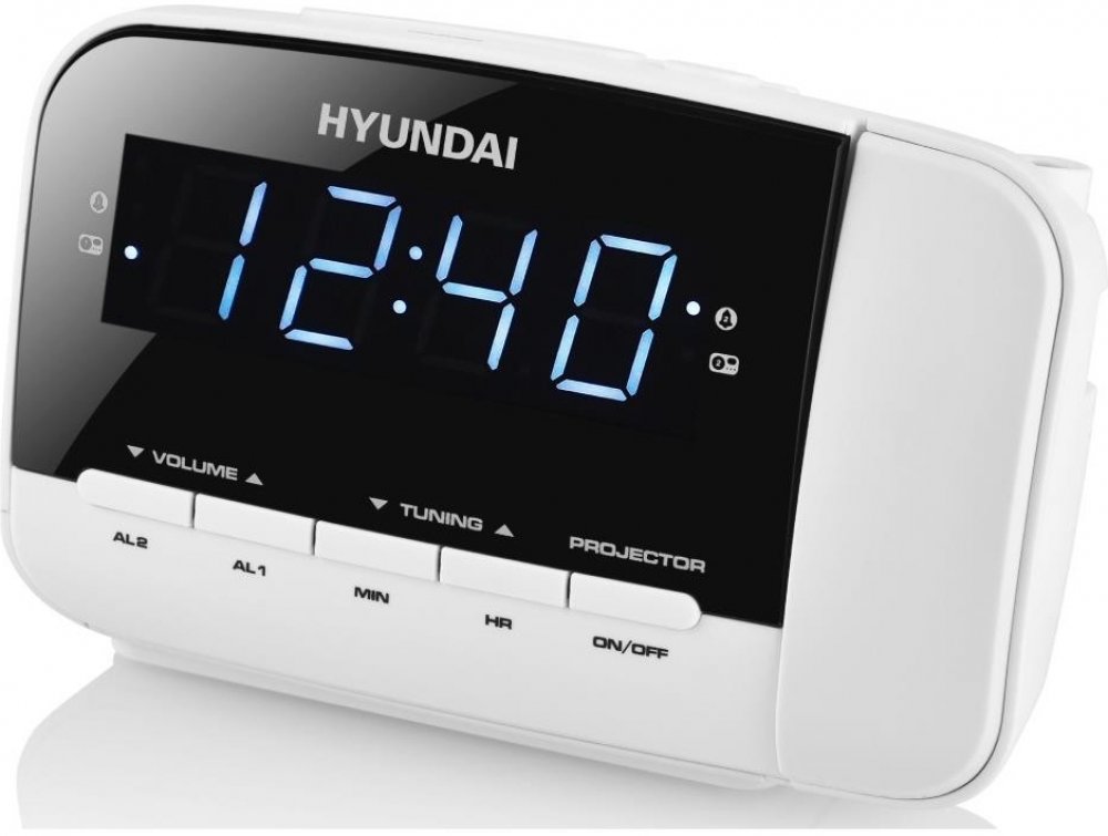 Domácí spotřebiče-PERFEKT představuje:Radiobudík s projektorem HYUNDAI RAC 481 PLLWW Bílý
