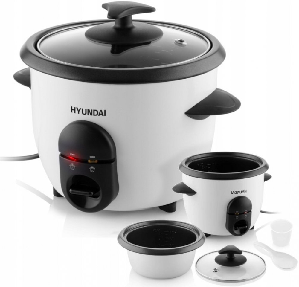 Rýžovar Hyundai HYURC100, bílá Kompaktní a skladný rýžovar Hyundai vám přinese komfort, zdravé vaření a úsporu času. S objemem nádoby 1 litr a maximální kapacitou 800 g rýže (5 odměrek) si snadno připravíte dokonalou rýži během pouhých 30 minut.