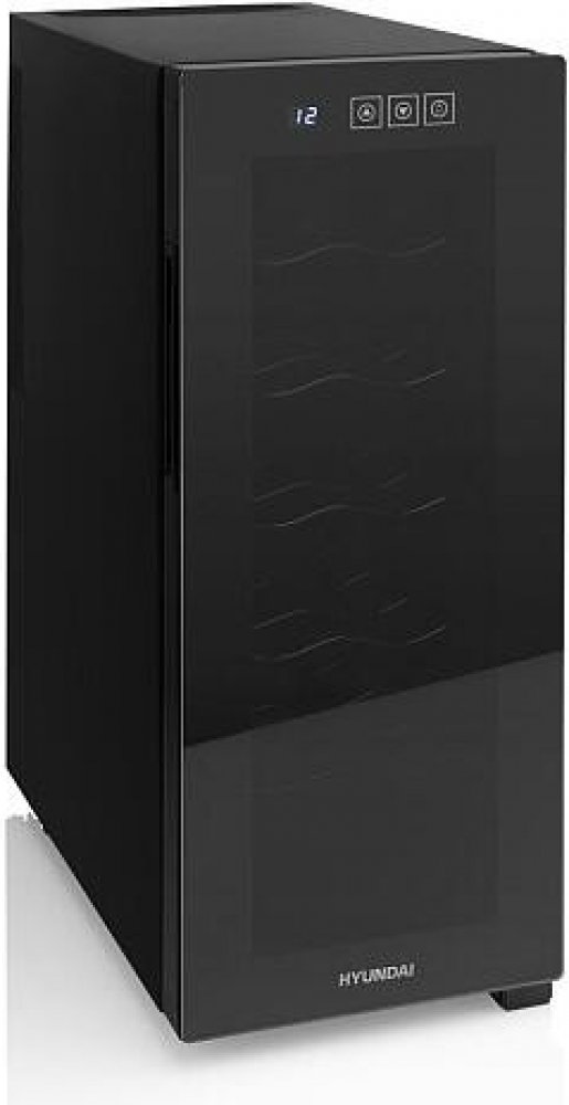 Hyundai volně stojící černá vinotéka 26 dB 61.5 x 25.5 x 51.7 cm 12 kg prosklené 1 G 1 132 kWh A 12 33 l 5 12 - 18 °C 61.5 cm 25.2 cm 50.4 cm