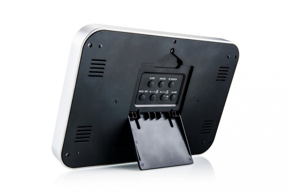 Přístroj navíc disponuje funkcí budíku. Lze nastavit až čtyři nezávislé časy buzení. U každého z nich jistě oceníte oblíbenou funkci SNOOZE. I takto velká a elegantní meteostanice si postačí s napájením pomocí dvou tužkových baterií. V případě její instalace na zeď se tak nemusíte obávat problému s nevzhlednou kabeláží vedoucí k meteostanici.