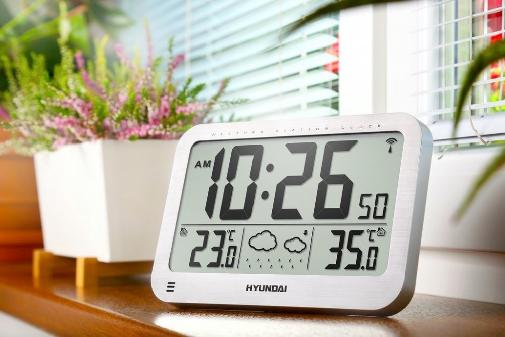 I když lze meteostanici Hyundai Ws2331 pověsit jednoduše na zeď, nejedná se pouze o nástěnné hodiny. Neméně důležitou funkcí je i animovaná předpověď počasí a zobrazení vnitřní i venkovní teploty. Venkovní teplotu lze měřit v rozsahu -20° až +50°C. U vnitřní teploty se tato škála pohybuje od 0° do 20°C.